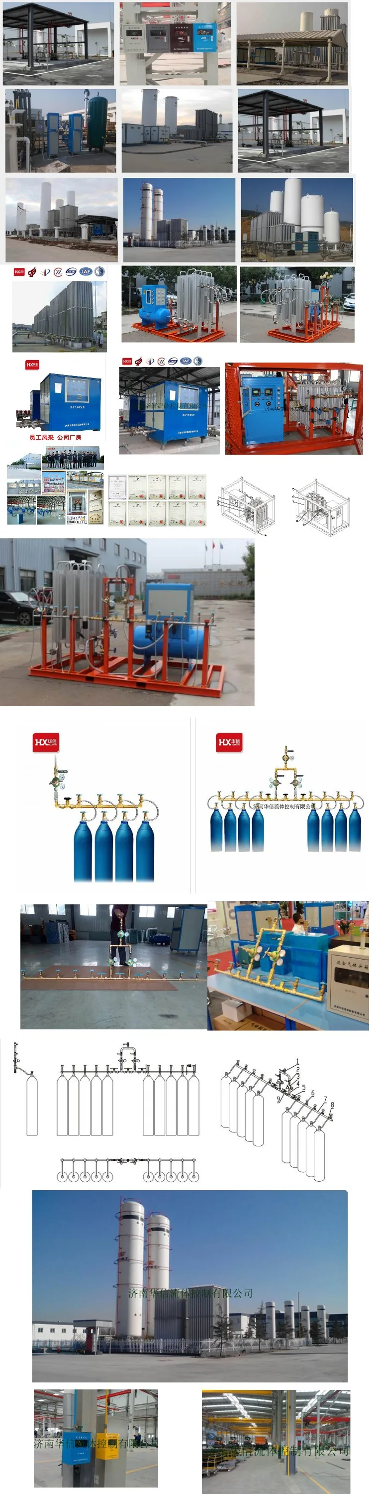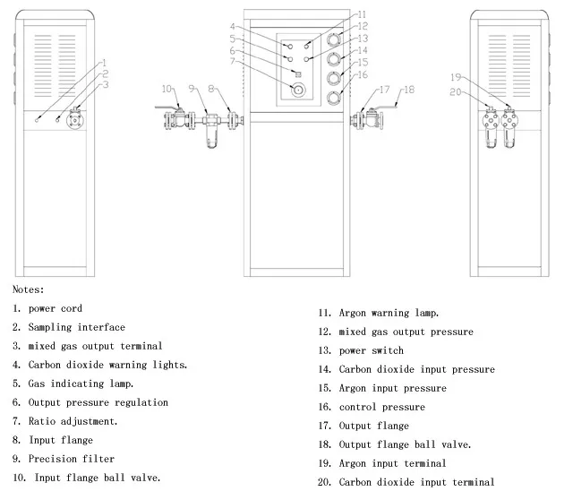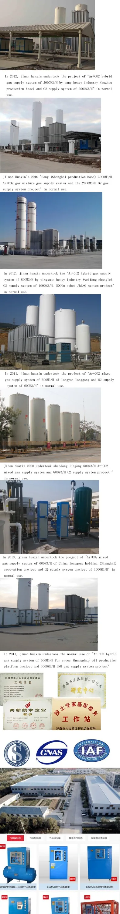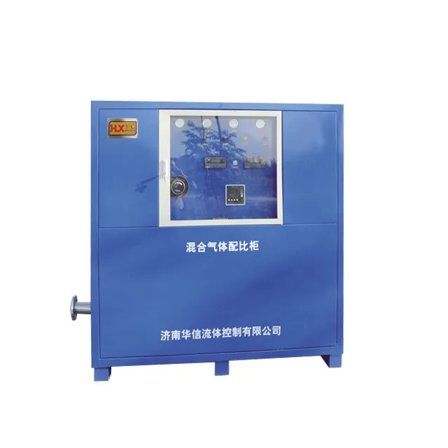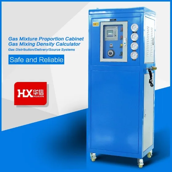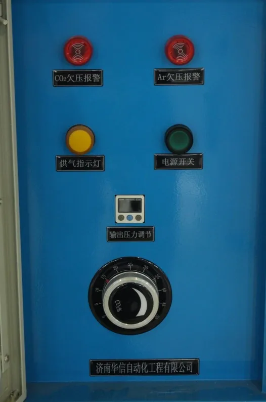 This series of mixing gas ratio cabinet is specially designed for large flow, high-precision two-component or multi-component mixing gas ratio. The exterior structure adopts a cabinet type structure, which is convenient for operation and installation. The mechanical part adopts the patented products "mixed gas balance valve" and "mixed gas proportion valve" developed by Huaxin. The overall design takes up small space and has high precision. The inlet pressure and outlet pressure can be adjusted automatically. The output pressure regulation adopts high precision pressure regulating valve, which is convenient to adjust and high precision. The output port is equipped with a mixed gas buffer tank in the cabinet, so that the output pressure of the mixed gas is more stable and the matching precision is higher.