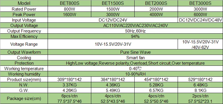 4.The inverter has advanced anti-jamming technology, fully functional protection circuit, soft start circuit and convenient operation mode.