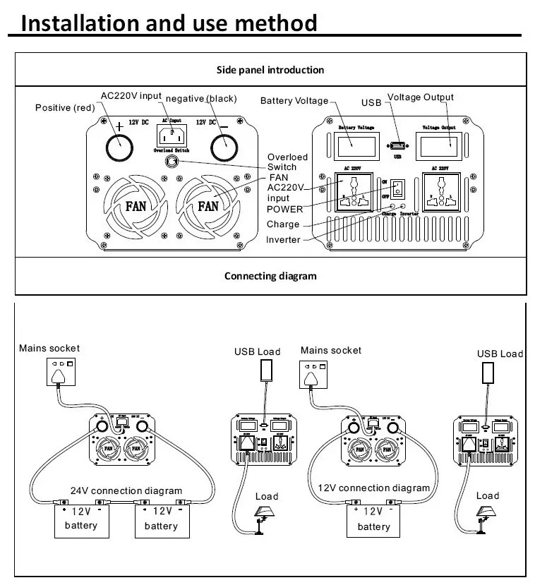3.The UPS inverter can charge the battery while connecting the mains electricity,thus ensuring that the load can be continuously supplied if the mains electricity is suddenly disconnected.