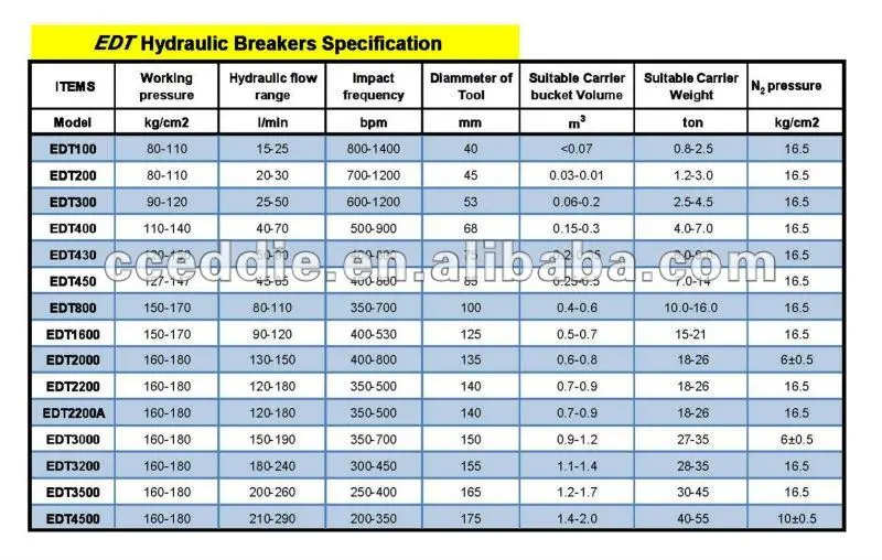 EDT hydraulic breakers have 3 types, box-silenced type, top type, side type , compatible with all kinds of excavators such as Doosan, Dawoo, Volvo, Hitachi, Kato, Kobelco, Komatsu, Sumitao, Liebheer, Hyundai, Cat, Jonyong, Changjiang, Liugong, Yucai, Case, John Deer, Fotonlovol and Loader etc.