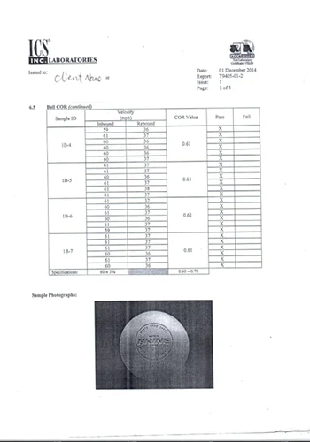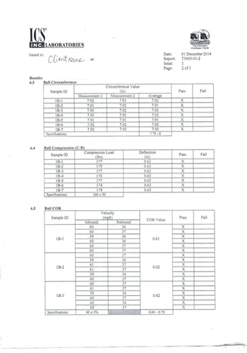 ~ Bounce test: From 1800mm height drop,1092-1292mm from falling point.