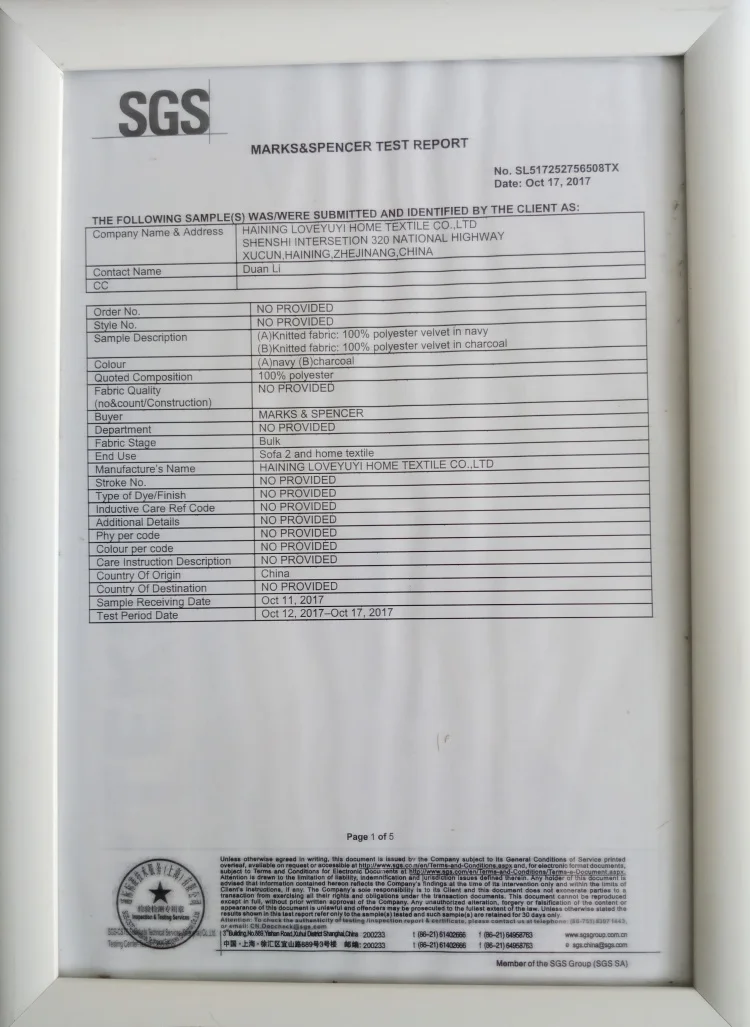HAINING LOVEYUYI HOME TEXTILE CO., LTD is a Chinese legal exporter and Golden Supplier on Alibaba, which also has its own build-up factory. We are specialized in exporting the most advanced collection of various velvet and woven upholstery fabrics to worldwide wholesalers and distributors.