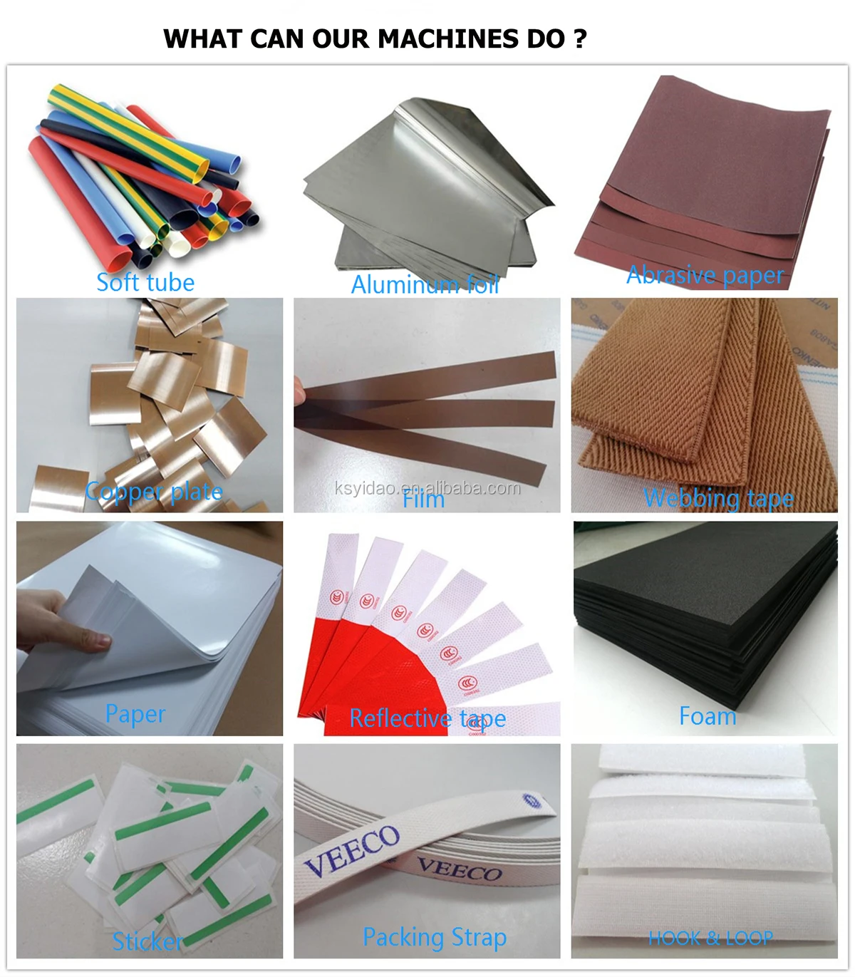 Sizing cutting for heat shrinking tube, flat cable, PVC sleeve, insulation paper, two-sided tape, webbing,rope,Velcro, cotton yarn belt, zipper, etc...