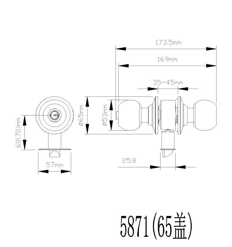 Door Prep | Cross bore 2-1/8"(54mm),Edge bore1"(25mm),Latch face 1"x2-1/4"(25x57mm) |