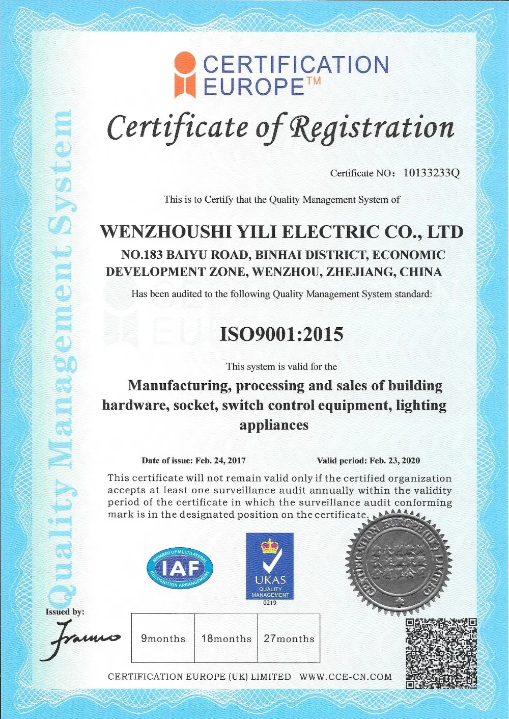 We have passed ISO9001 certification ,and products have passed cUL certification.
