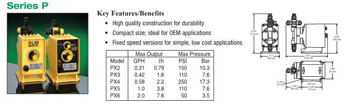 • Manually adjustable stroke length provides accurate pump output adjustment