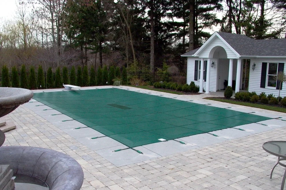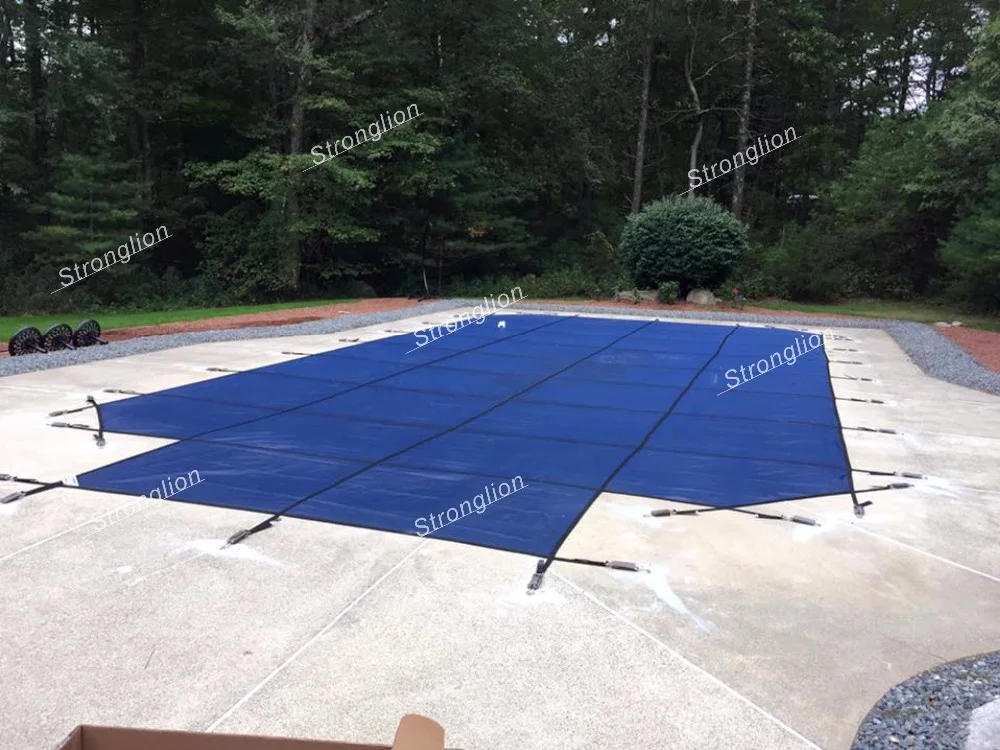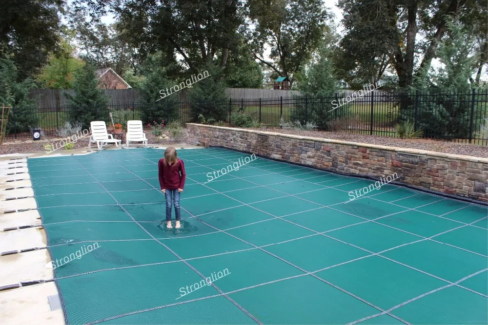 Mesh winter swimming pool cover, with traditional heavy-duty Tarp swimming pool cover, lighter quality is easy to install and collect. Breathable mesh can make rainwater seep into the swimming pool, so that there is no accumulated ice on the surface, and it can effectively prevent dust and debris from falling into the pool. Strong tensile toughness can effectively prevent children, livestock, pets, etc. from falling into the water. After installation, the surface is flat and the life span can reach 10 years. It is favored and promoted by domestic and foreign customers!