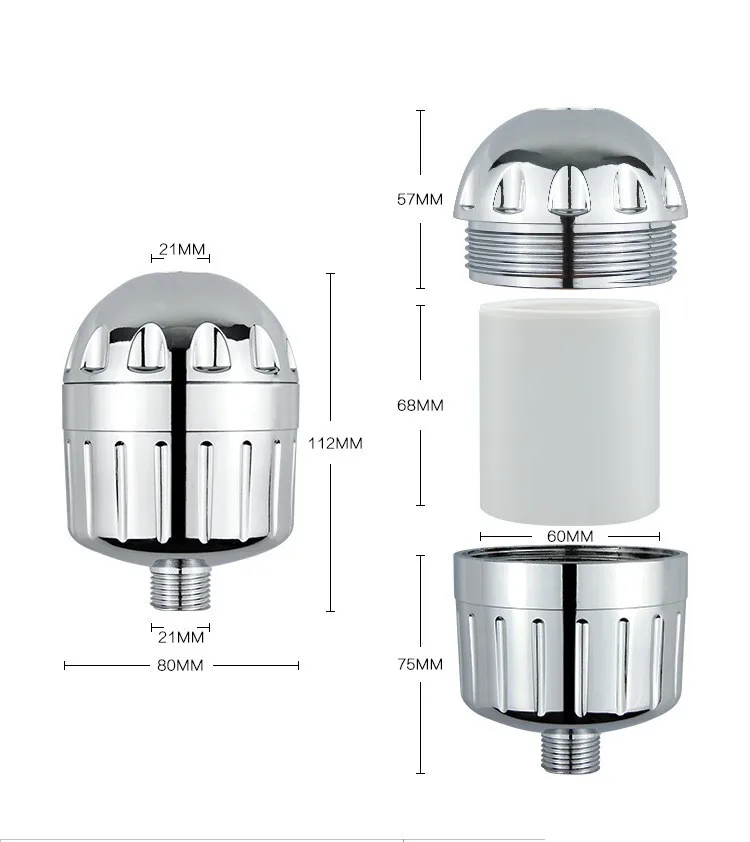 Features | 1.Removes Chlorine, heavy metals (lead, mercury, nickel, chromium), bacteria, pesticides,etc. 2. Reduces dry itchy skin, dandruff, eczema, and dramatically improves the condition of your skin 3.Universal connections work with all shower types, including fixed, rain and handheld showers. No tools required 4.Physical timing,Manual time loop function Record filter cartridge life and remind you to replace the cartridge | ||||