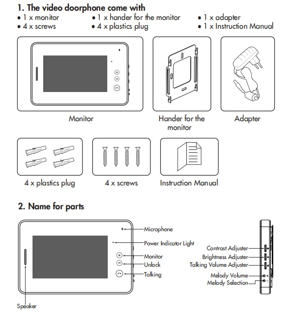 *Talking,monitoring,doorlock release