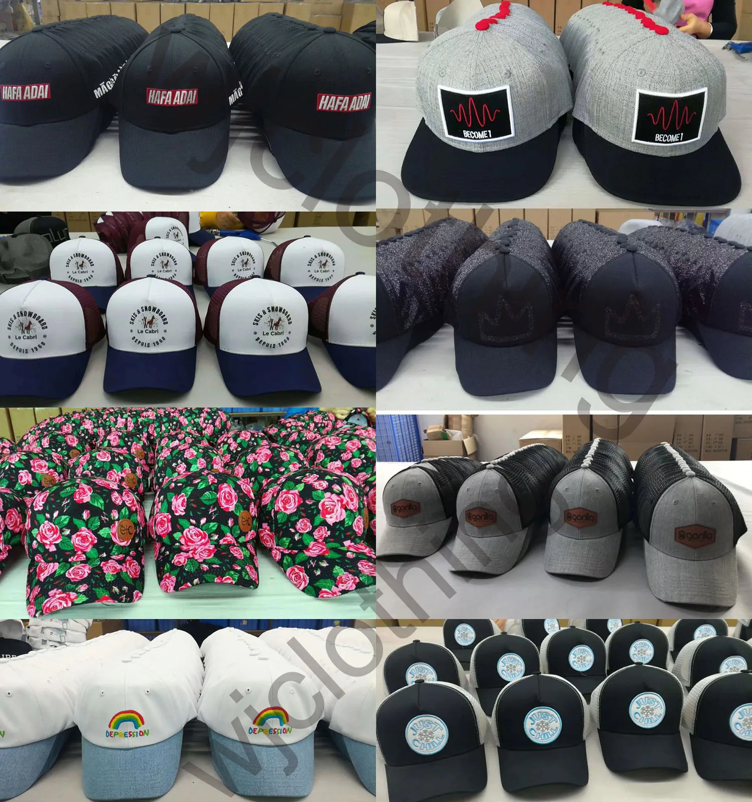 | Fabrics | cotton and mesh | can do 100% acrylic,80% acrylic and 20% wool, corduroy, polyester and so on |