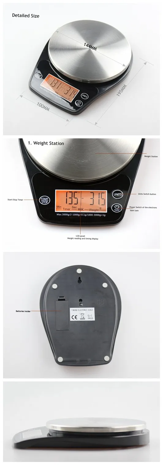 1)This digital electronic balance is composed of a high-precision resistance strain sensor and a high-performance microcontroller.