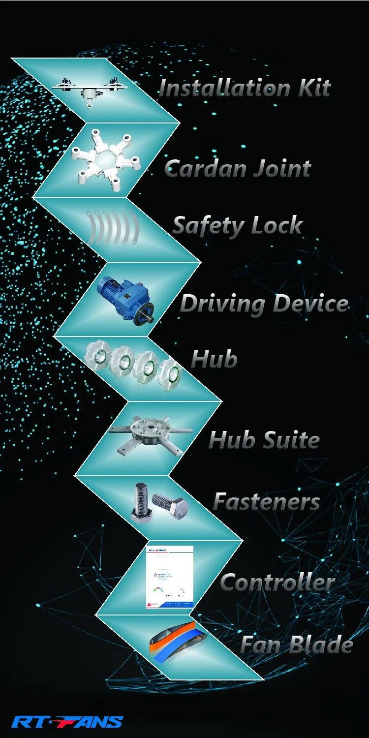 Fan Dia(M/FT): | 7.3/24′ | 6.4/21' | 5.5/18' | 4.6/15' | 3.7/12' | 2.8/9' |
