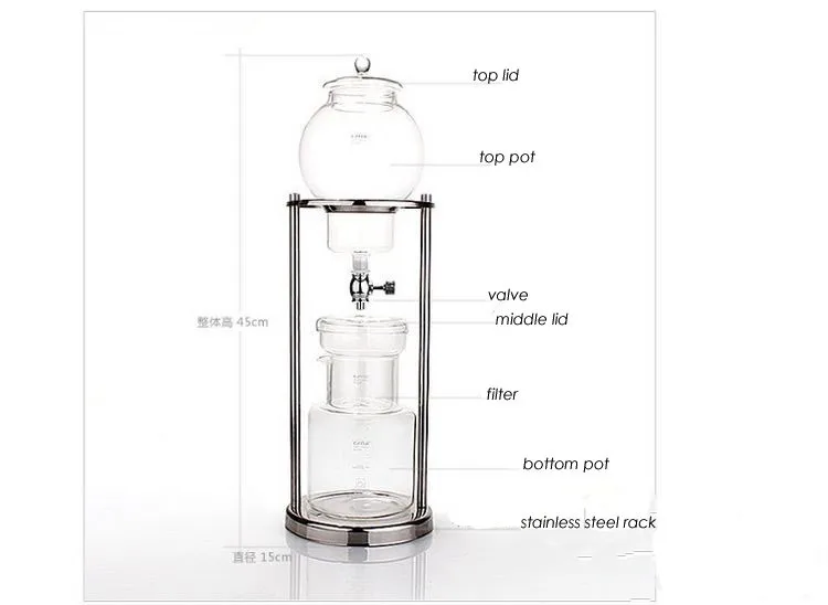 Z Kitchen Accessories Stainless Steel Pillar Glass 600/ 1000 ML Cold Brew Coffee Maker