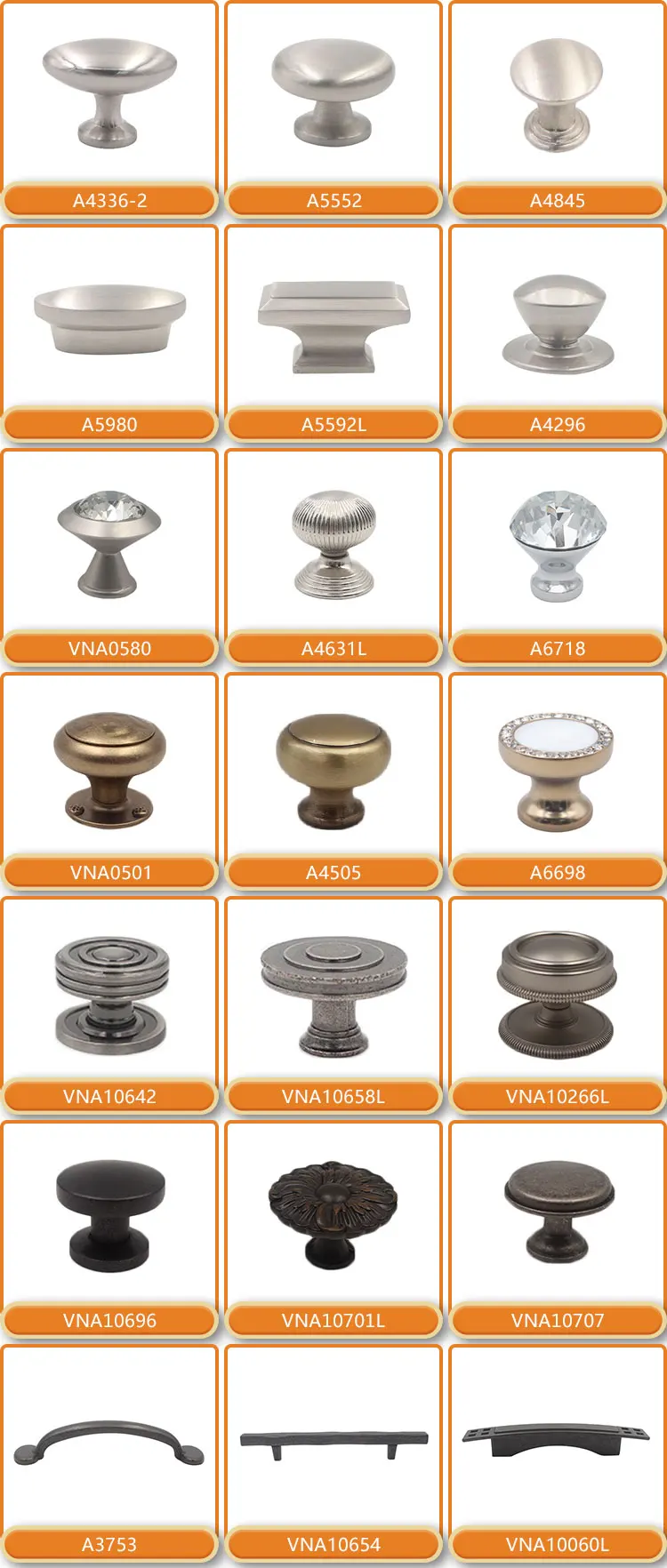 Our factory mainly manufacture various hardware accessories , such as Handle Series , Knob Series , Slides Series , Hook Series , Hinges Series , Screws and nuts etc.
