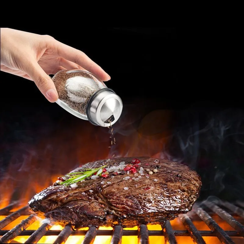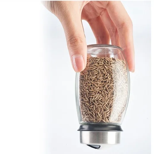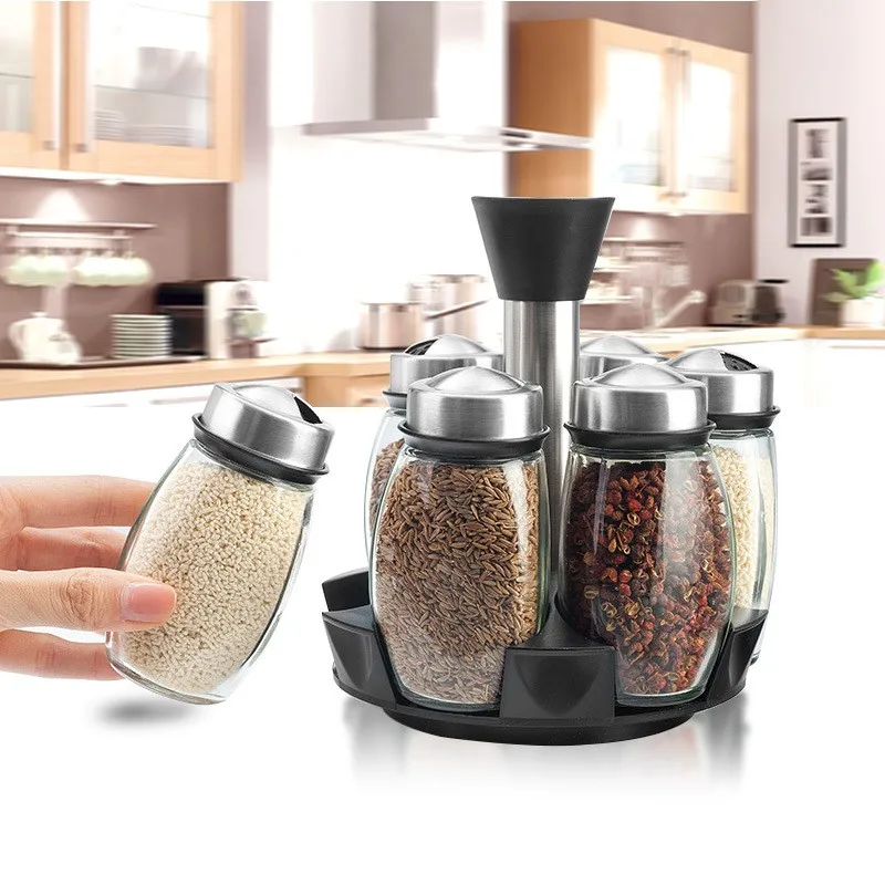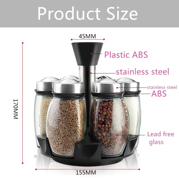 Stainless Steel Rotary Spice Jar set Glass condiment pot/bottle with spice rack