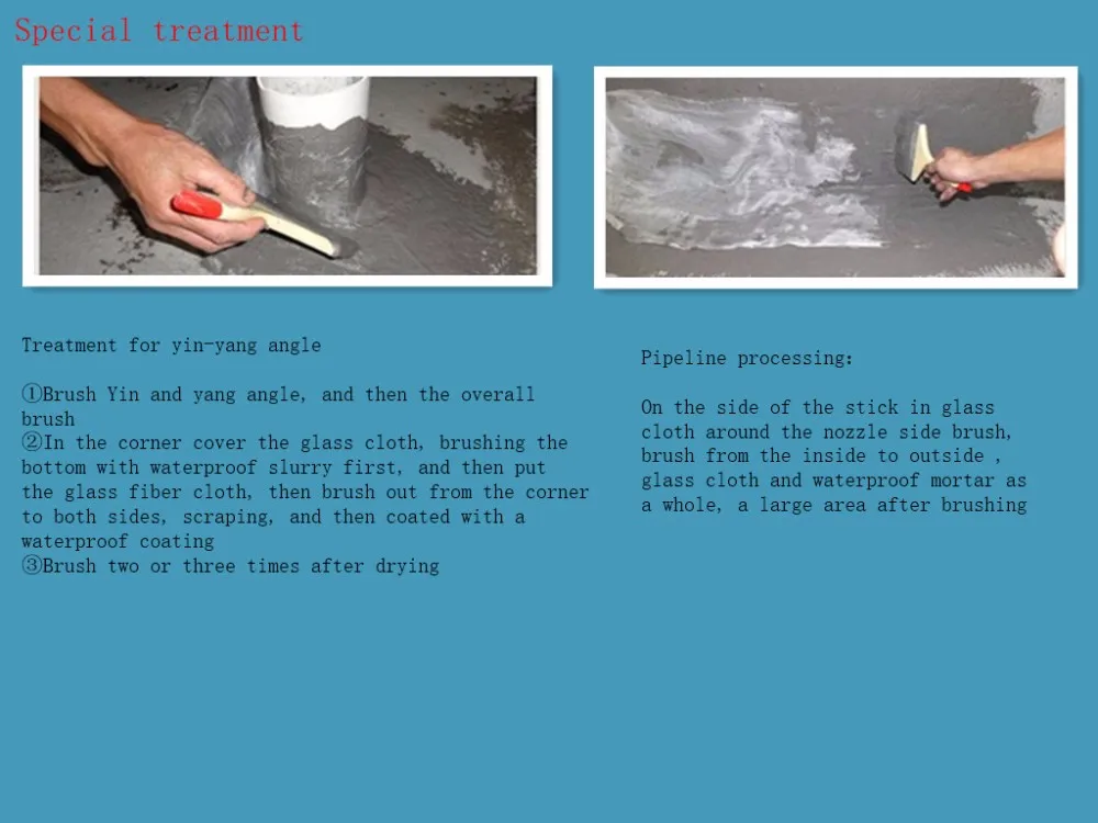 Details: first the Yin and yang angle, pipe root brushing a layer of paint, Putie reinforcing layer (glass fiber cloth or non-woven fabrics, etc.), and the coating completely soaked reinforcing layer.