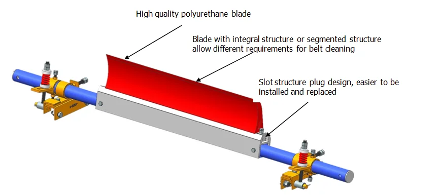 BuMtresD primary polyurethane belt cleaner is designed to remove bulk materials from the conveyor. The blade is made of reliable quality polyurethane materials resulting in optimal performance .
