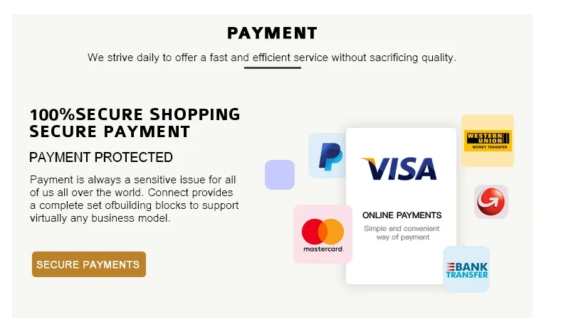 5. What's your payment terms?A: T/T and Paypal,30% deposit in advance,balance 70% pay off before shipping.