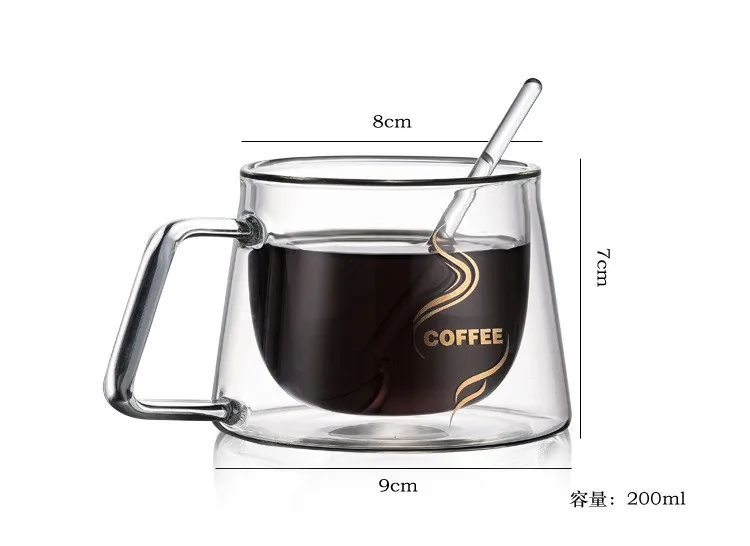 Double-Wall Insulated Glass Cup Coffee Mugs with Unique with Handle Perfect for Latte/ Americano/ Cappuccinos/ Tea Bag/ Beverage