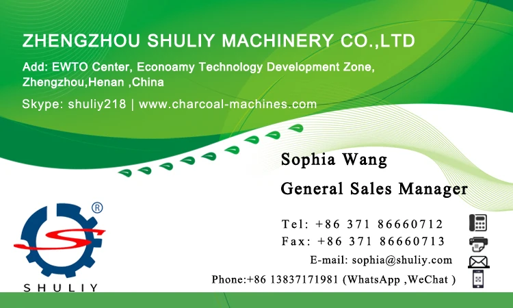 Shuliy Factory is specialized in machines used to make charcoal machine,include wood crusher machine,wood chipper,wood shaving machine,sawdust briquette machine,charcoal briquette machine ,carbonization furnace,charcoal ball press machine,shisha charcoal machine and so on.We can customize the production line for you according to your requirement.In recent years, a large number of products exported to the Philippines,Malaysia,Indonesia,Canada,Australia,Congo,Nigeria,Sudan,Saudi Arabia,the United States,India,Russia,Mongolia,Kazakhstan and other countries.