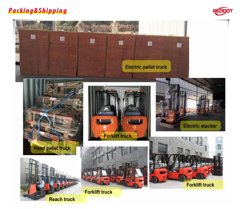 With improvements, REDDOT is professional and specialized in electric warehouse equipments, forklift trucks field and plays as a key brand in warehouse equipment industry worldwide market. We are offering electric pallet truck capacity 1Ton to 4Ton; Electric stacker 1Ton to 2Ton; Internal combustion forklift truck 1Ton-45Ton; Electric forklift 0.5Ton to 16Ton; Tow tractor; Rough Terrain forklift to cover the whole class(I,II,III,IV,V,VI,VII) equipments and the whole range capacity products requirements.