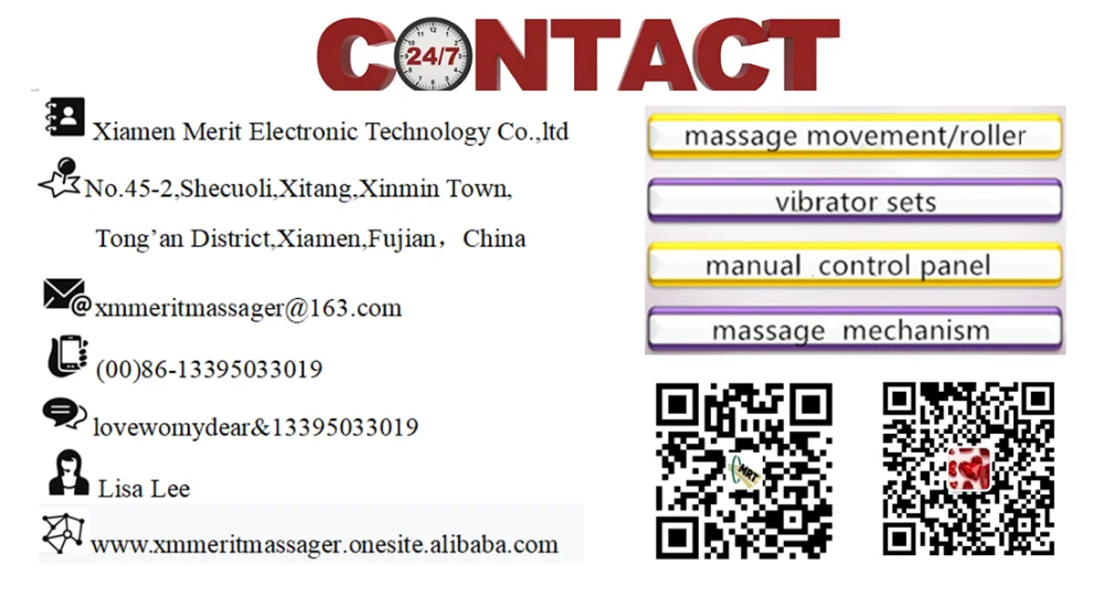 Xiamen Merit Electronic Technology Co.,ltd is mainly dealing with massager/vibrator accessories,contains vibrating massage recliner parts,car seat massage system,massage chair control roller parts,massager parts for recliner mechanism on sofa&massage chair,vibration massage movements,massage heads,manual control panels,vibrators sets etc.we have experience on massage products from 2006.We form 8 elite teams,have 100 staffs to work.Not only we can supply OEM/ODM producing,and we also are skilled in designing program on electronics and function upgrading/plastic parts reshaped.In domestic market,we are acquainted with the quality of plastic injection/mechanical parts &electronic elements &motors well,and have firm production line with the factories,and strict quality testing appliance,and economical R&d expense approach.We bend ourselves on selling massage products coincident to qualified supplies under reasonable price by win-win business.Our products mounted on massage chair&cushion are creditable ordered from Southeast Asia,Middle East,Southern Europe throughout the ages. It's hoped that there will be resident development and common progress in the future cooperation!