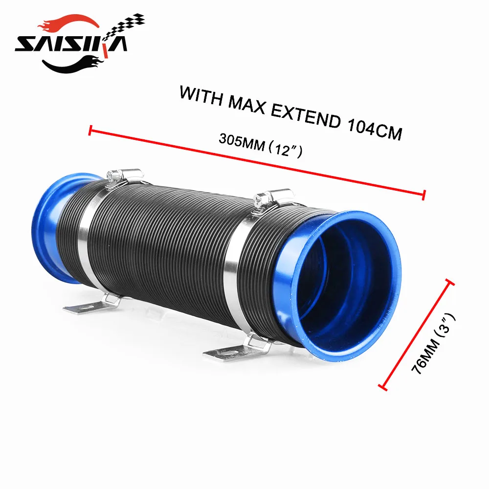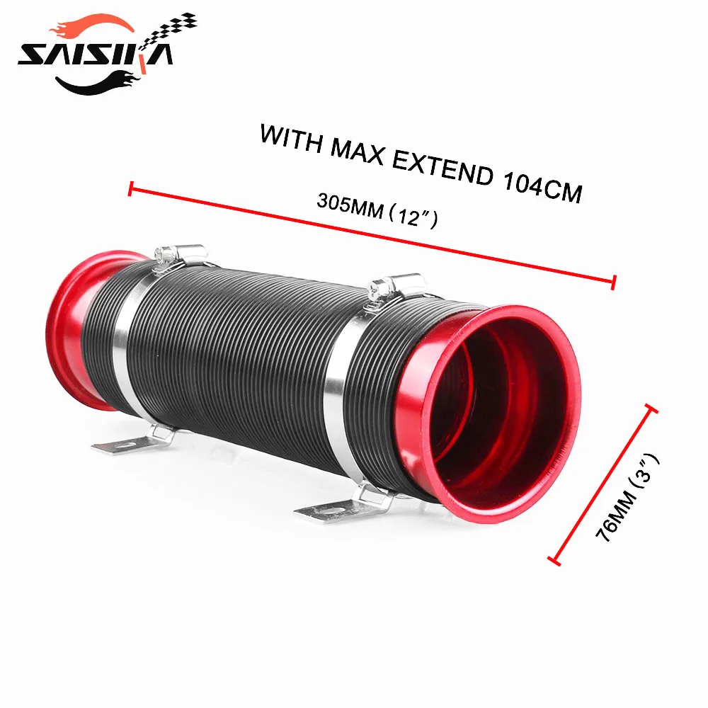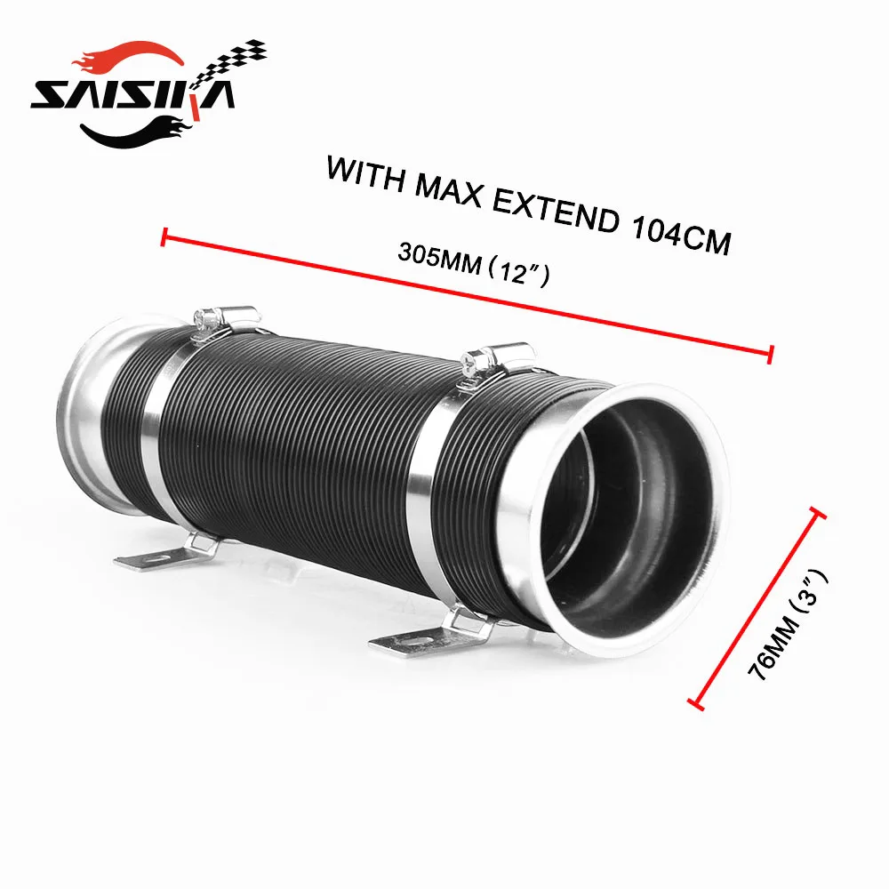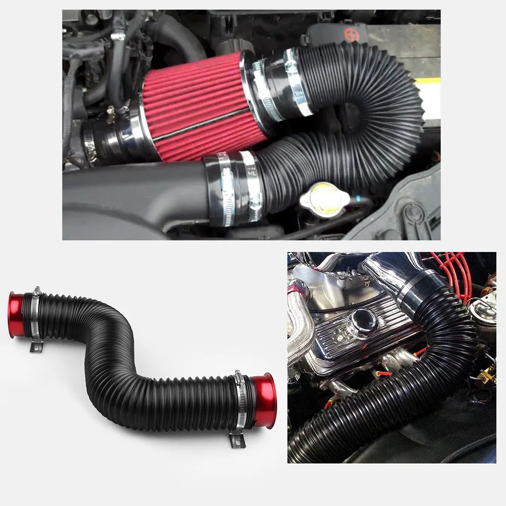 This adjustable PVC heat resistant air intake pipe is the paramount replacement piece for custom applications on cold air intake system or to ventilate braking system. By customizing your own air intake system,this air intake pipe can maximize airflow into the combustion chamber and therefore improves throttle response. Also, the flexible PVC with a built-in wire core will hold its shape directing air from the lower valance into the air filter, or cool the brake plates after a heavy run on the road.
