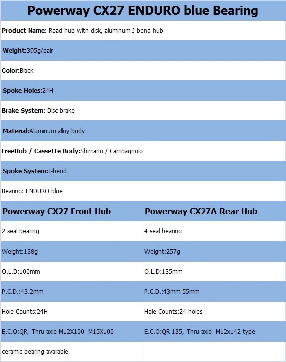 Powerway CX27 ENDURO bearing disk brake bike hub 6 pawls J-bend for Cyclocrsoo road bicycle wheels