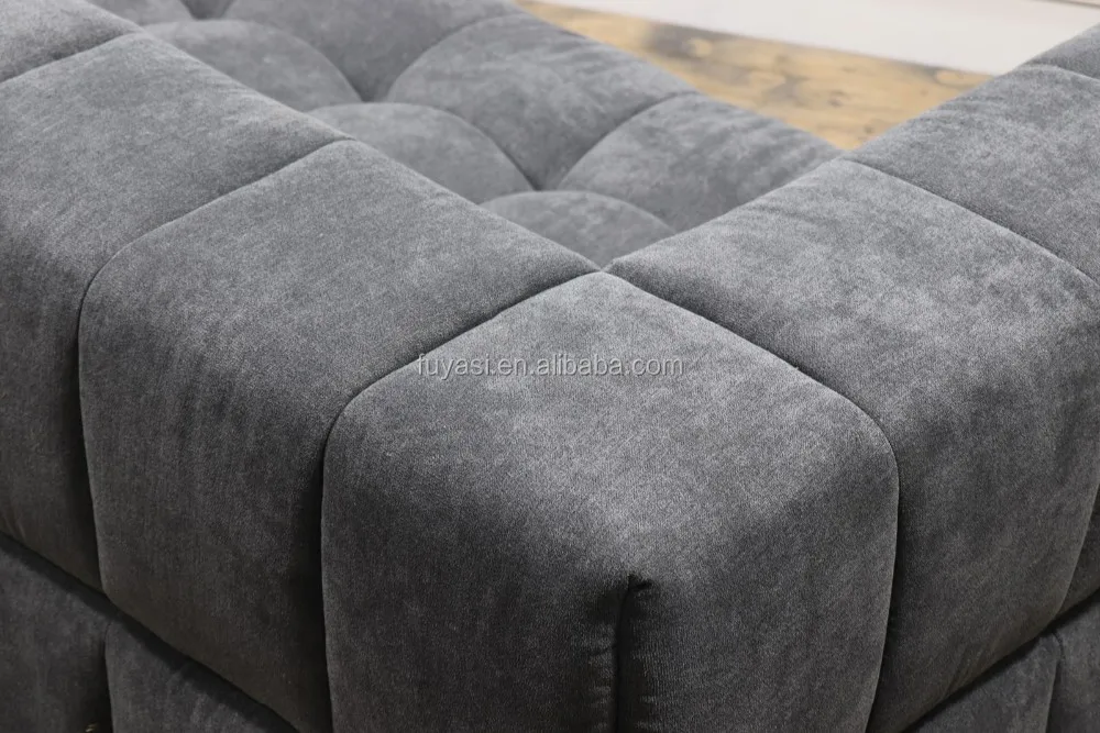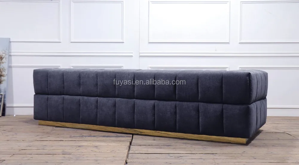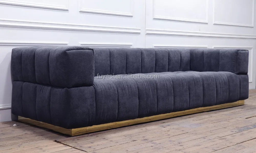 square tufted velvet fabric living room couch with stainless steel base