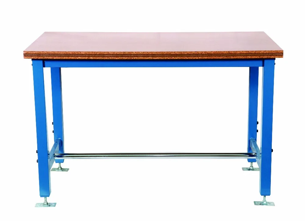This steel workshop bench with flat wooden surface is ideal for handling heavy projects in manual workplace, thick hardwood top has spacious surface area and is UV-cured for lasting beauty and durability.