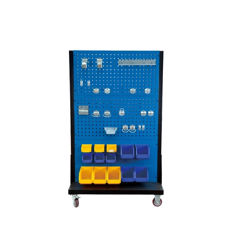 Heavy-Duty Steel Pegboard Mobile Tool Cart Movable Storage Shelves