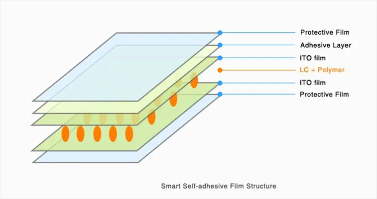 Smart Film are based on digital shading technology that allows the color of film to go from opaque to transparent when you switch off&on.