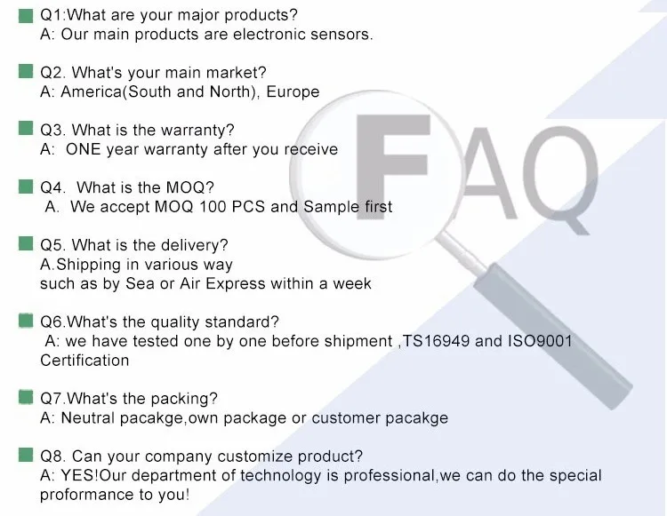 We supply standard, semi-customized, and totally customized items all according to client's requirements. The company's products cover in the USA, European, Japanese and Korean cars and have ISO9001 quality management system certification. The goal of the company is to provide the world with OEM spare parts.