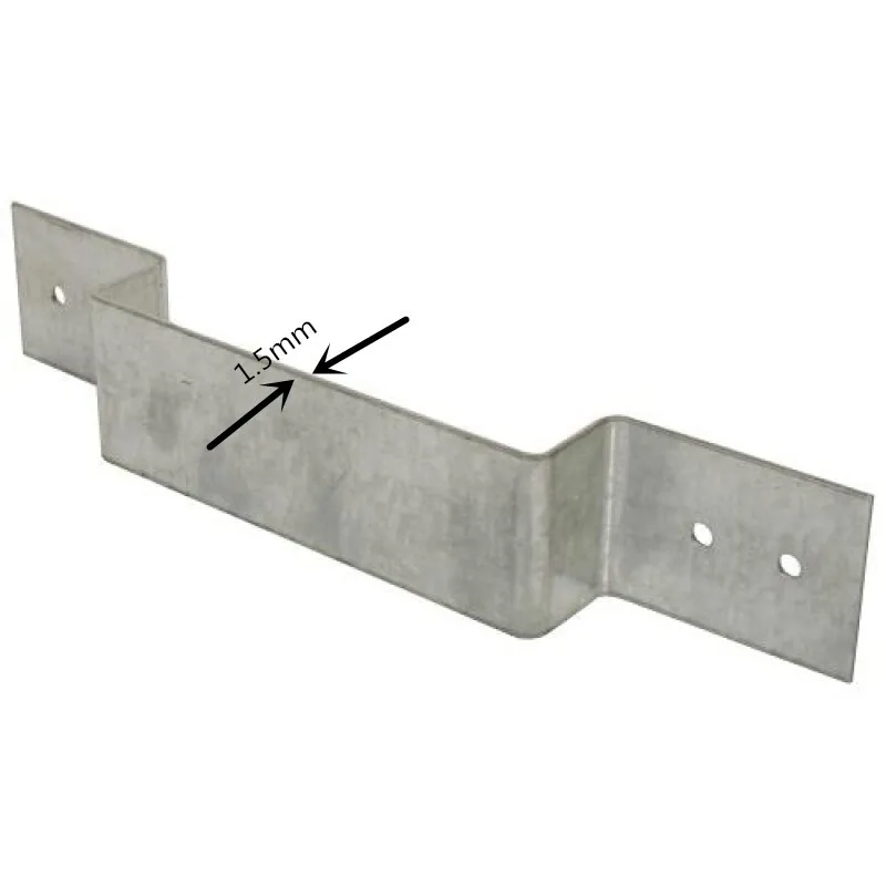 Galvanised Fence Panel Security Bracket that deters against unwanted removal or theft of panels and helps reduce panel 'rattle'. 1.5mm thick. For connecting panels between 100mm to 120mm concrete or timber posts.