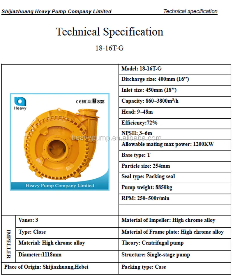 * Material of pump casing: chrome alloy
