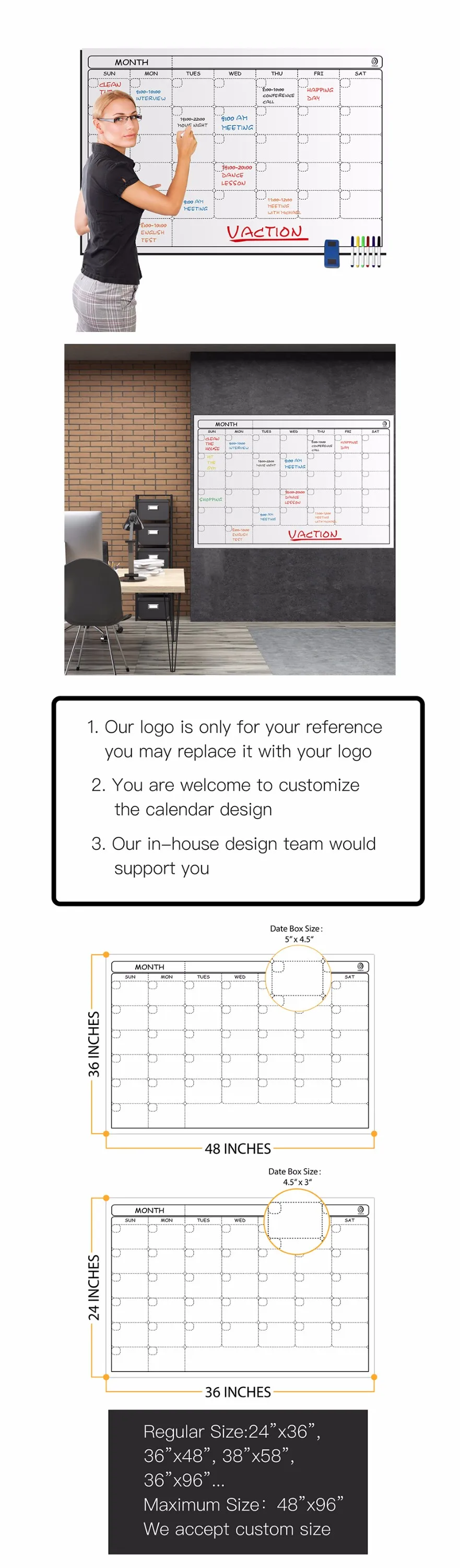 Product Name | 010-2A2 Dry erase rewritable calendar planner single sheet wall calendar agenda calendar | ||||