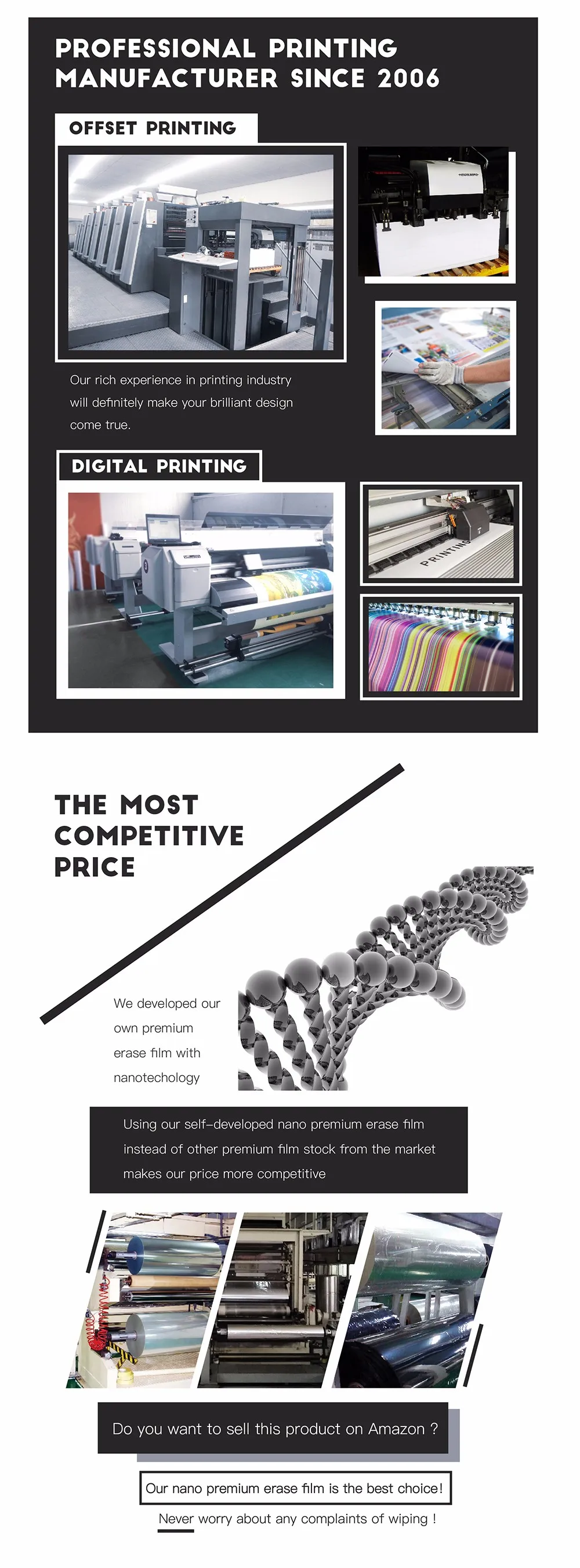 Now we use our self-developed nano premium erase film instead of other premium