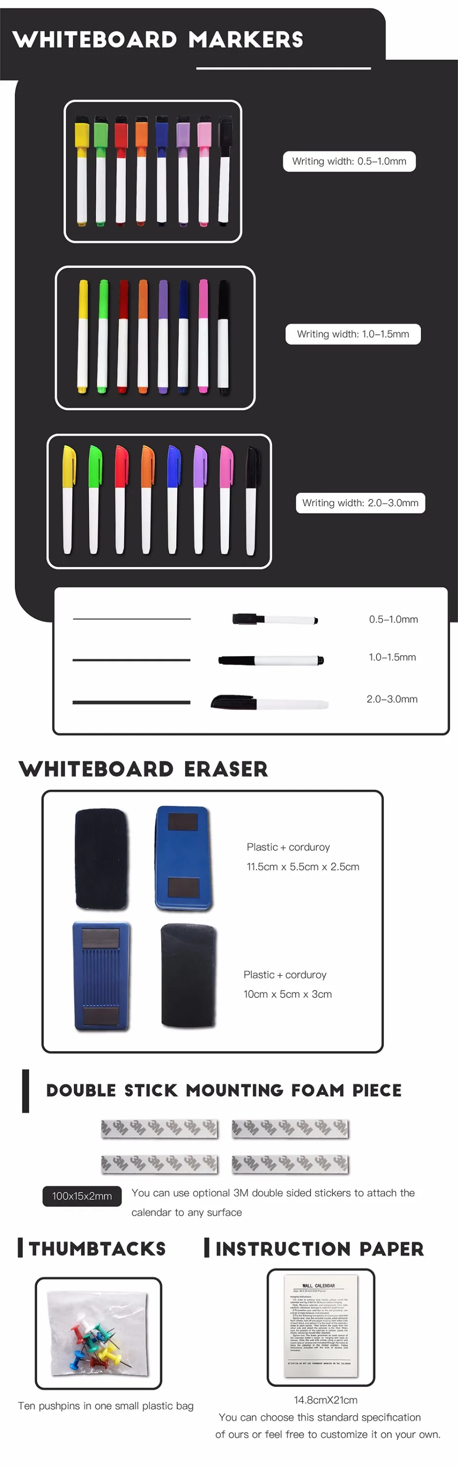 Accessories | Multi-color marker pen, eraser, double sided stickers, PINS etc. | ||||