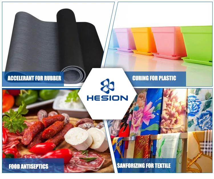 (1) . Hexamine is mainly used for plastic resin and a curing agent, catalyst of amino plastics and foaming agent, rubbervulcanization accelerator (accelerator h), textile shrinkage agent.