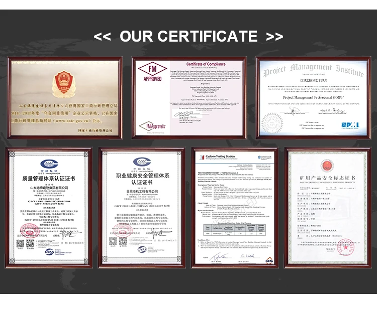 DIMENSION : .Cover width : 1000 mm .Panel width : 1046 mm .Thickness : 50, 60, 80 mm .Min. length : 2000 mm .Max. length: 20000 mm .Length to order per 10mm .Tolerances - width : ±2 mm - length : ±5 mm - thickness : ±2 mm | SURFACE External facing : - steel plate 0.4 - 0.8mm .Internal facing : steel plate 0.4 - 0.8mm FINISHING LACQUER : .Polyester - 25μm .PVDF - 25μm .HDP - 25μm | CHARACTERISTICS : Insulation foam materials : .PUR - Polyurethane - Fire reaction : CS3d0 ** .PUR - Pentane - Fire reaction : BS3d0 ** .PIR - Pentane Fire reaction : BS2d0 ** (**According to EN13501-1, DIN 4102 | ||
