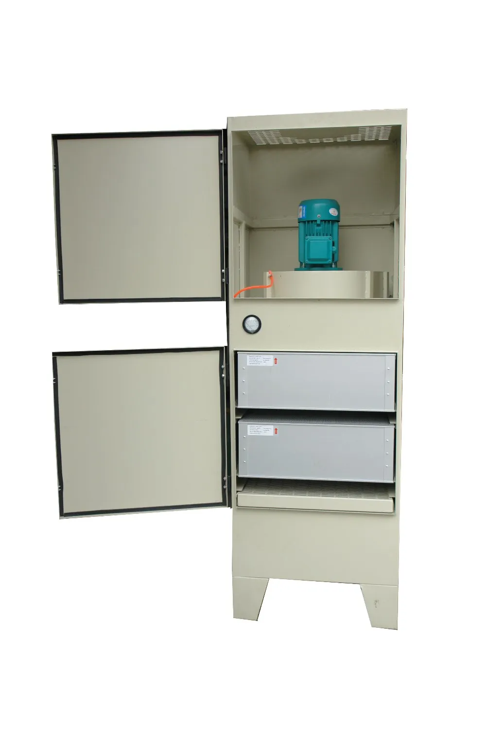 The oil mist exhaust gas is sucked into the purification equipment under the suction of the impeller. Firstly, it passes through the split cone and enters the first-stage filtration device to remove oil mist particles over 20 Ym .