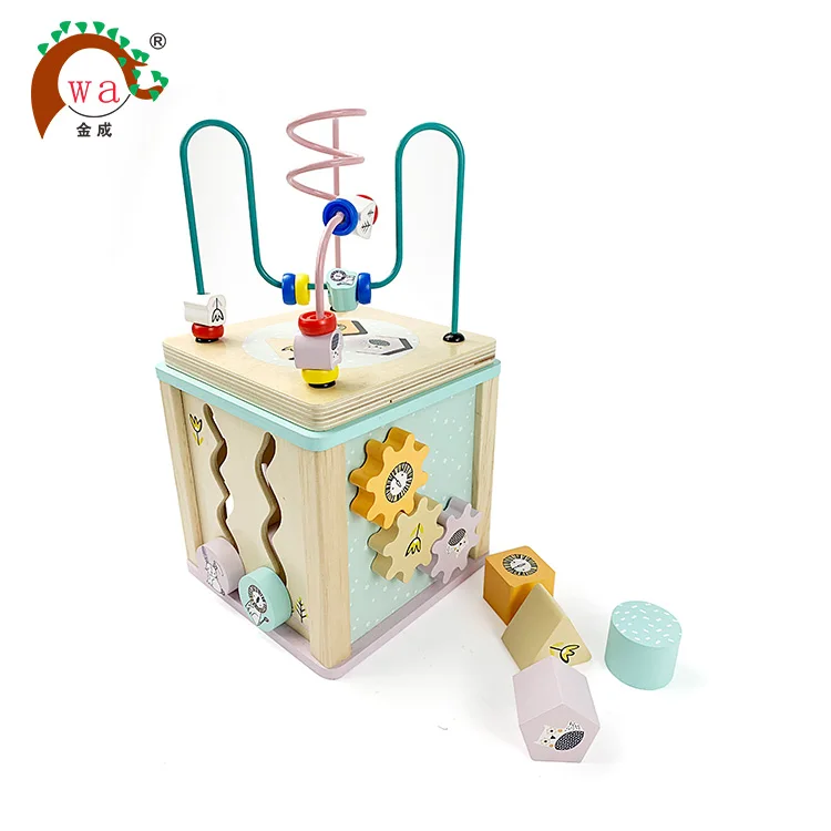 5-IN-1 ACTIVITY CUBE-Multi-Function Activity cube gives your toddler 5 different activities to entertain herself, all compacted in 1! It will provide your child or toddler with hours of entertainment as she will rotate from one activity to another - the bead maze, Wooden blocks, Wooden insects, rotating gears and insect sliders.