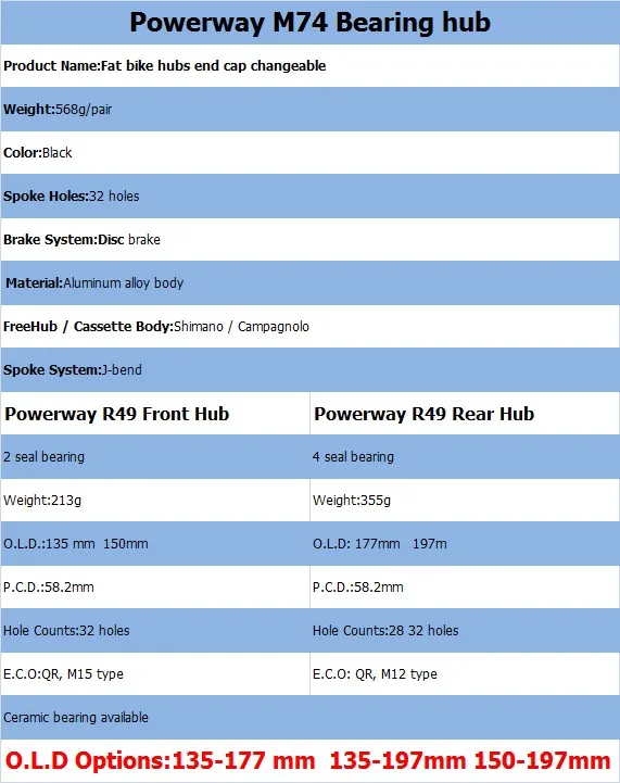 Powerway R49 Front Hub Powerway R49 Rear Hub