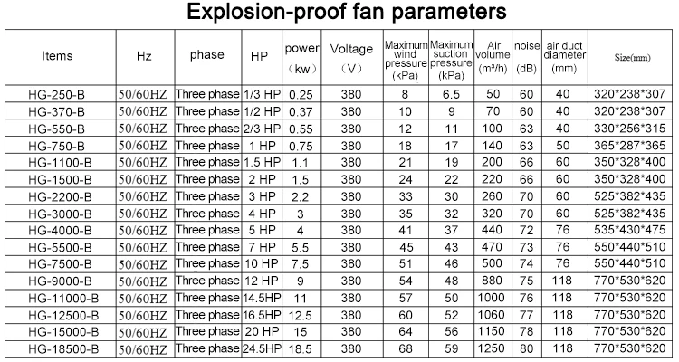 The explosion-proof fan motor adopts a fully enclosed design, which can effectively prevent flammable and explosive gases from entering the fan interior, and is suitable for blow suction applications in flammable and explosive environments.