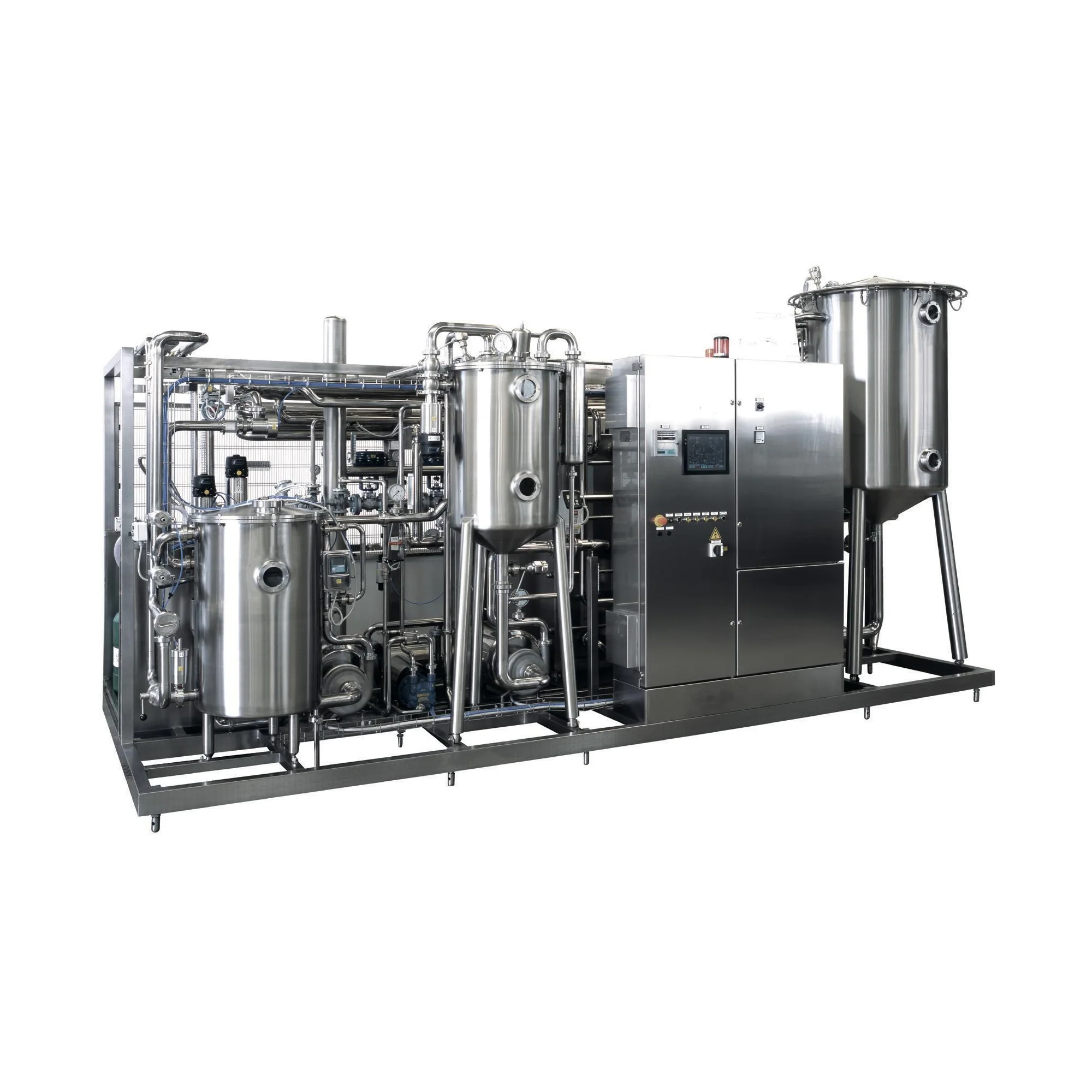 UHT Plate type Sterilizer is PLC controlled,with optional capacity from 1t/hr to 15t/hr.The system work in aseptic section and normal section, for the technical require-ments of filling at low temperature,normal temperature and high temperature. The seven-section heat exchanger ensures minimum consumption of energy,and perfect design of CIP and SIP satisfies the demand of cleaning and sterilization.Ultra-high temperature water is employed as the media for the heating of materials and temperature adjustment of filling exit,featuring high accuracy.
