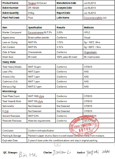 Eurycomanone is the component of Tongkat Ali, have cut malaria, benefit wet retreat yellow, zhuang Yang, promote physical strength and vigor, reduce fatigue, antiseptic, fight ulcer, antipyretic effectiveness, also have improve the effect such as hypertension of all sorts of disease, diabetic.