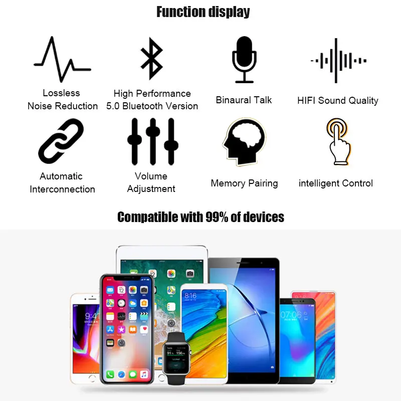 TWS Wireless Sports Blue tooths Earbuds,Fan7 In Ear Headphone Noise Cancelling Stereo headset for iPhone Samsung