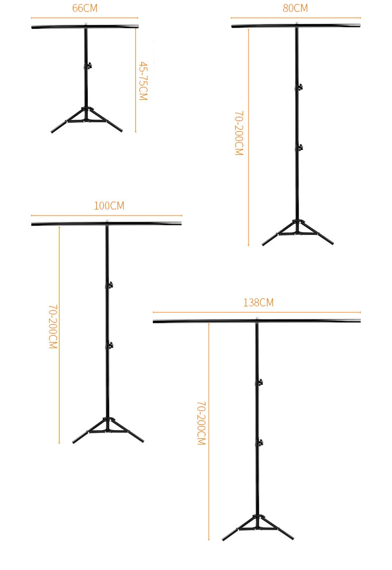 The T-shape background stand is made of aluminum alloy, strong enough for heavy duty work. Well-built product for background backdrop. Lightweight and compact-size make them practical tools and meet your backdrop support demands. Clamps are use to clip the background paper well