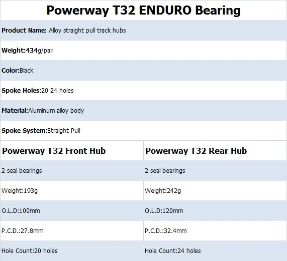 Powerway T32 Front Hub\tPowerway T32 Rear Hub