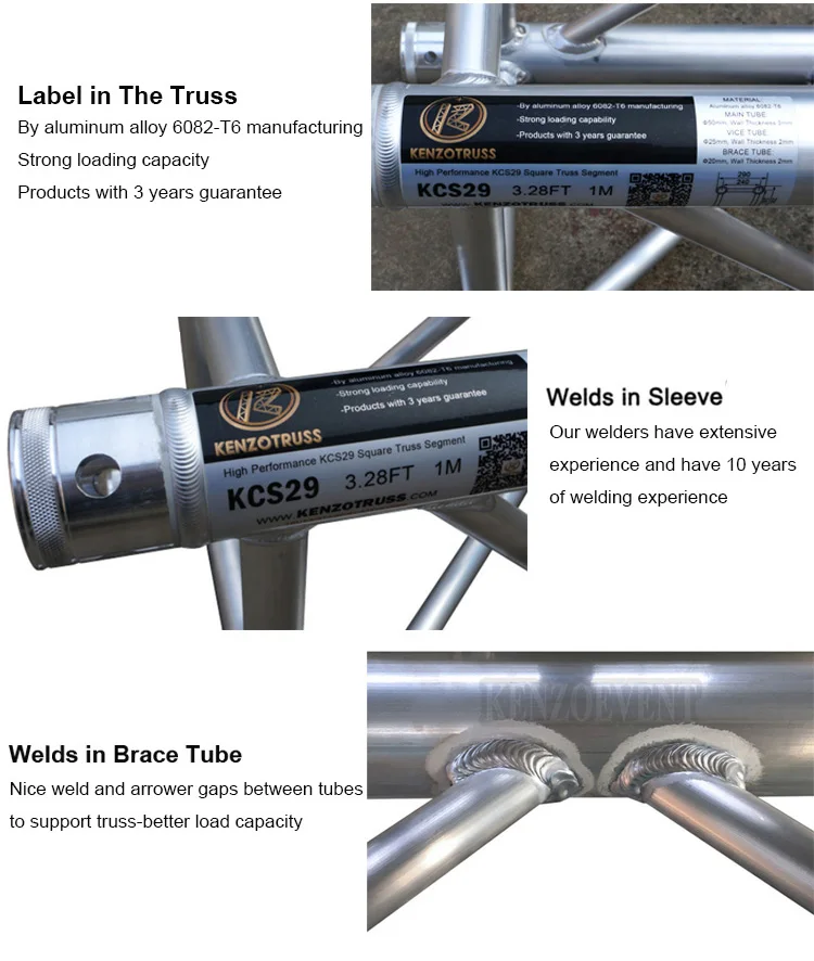 Kenzo aluminum spigot truss,is designed and engineered with life dependable welds to perform to the highest standards.